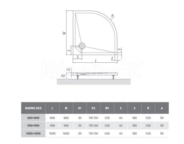 >>  Sprchové vaničky  >>  Vaničky Liaty mramor sprchové  >>  Štvrťkruhové vaničky liatymramor  >>  Roth Marmo Neo Round Vanička sprchová štvrťkruhová 100x100 liaty mramor, Biela
