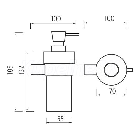 Nástěnný dávkovač tekutého mýdla z matného skla. Pumpička plast / chrom. Objem nádobky 250 ml.