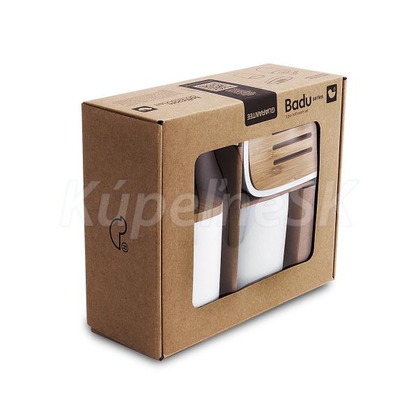 Sada doplňků do koupelny dávkovač, mýdlenka, pohárek je skvělým doplňkem do koupelny. Pokud sníte o koupelně s přírodními prvky, není třeba se příliš omezovat. Současný trh nabízí nepřeberné množství těchto materiálů a doplnit takovou koupelnu můžete lehce se sérií BADU. Bílá barva v kombinaci s bambusem dodá vaší koupelně ten správný ráz. Obsah dávkovače v setu 270 ml.
