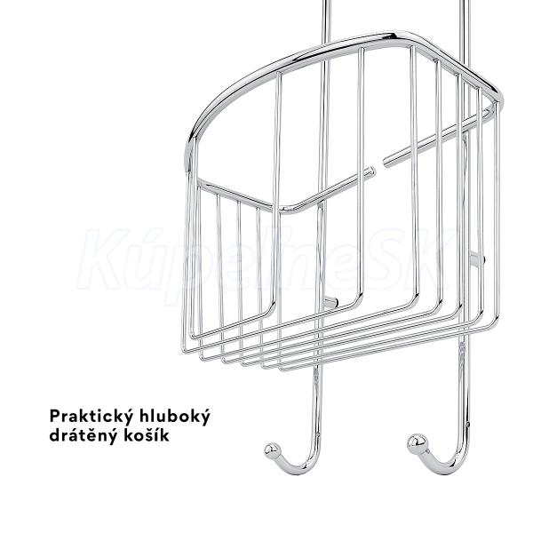 Drátěná police k zavěšení do sprchového koutu se dvěma drátěnými koši.