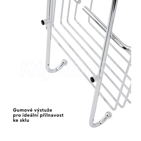 Závěsná police třípatrová je skvělým doplňkem do koupelny. Chcete mít svůj oblíbený šampon nebo sprchový gel při ruce, ale zároveň ho nechcete neustále lovit na zemi sprchového koutu? Pak jsou závěsné drátěné police ideálním řešením. V nabídce NIMCO naleznete dvoupatrovou nebo třípatrovou, takže se nemusíte bát, že se se do ní vše nevejde. Hluboké košíky zajistí, aby z nich přípravky nevypadávaly. Organizovanost a pořádek patří i do koupelny a s policemi NIMCO toho můžete hravě dosáhnout. Ve spodní části jsou dva praktické háčky určené k zavěšení mycí houby, kartáče apod. Díky vysoce kvalitní pochromované oceli mají police dlouhou životnost. V zadní části police jsou gumové výztuže pro idelální přilnavost ke sklu. Výztuže zabraňují poškození skla. Pryžová objímka na závěsných hácích chrání sklo i polici před poškozením. Tloušťka skla sprchového koutu pro zavěšení police max 25 mm.