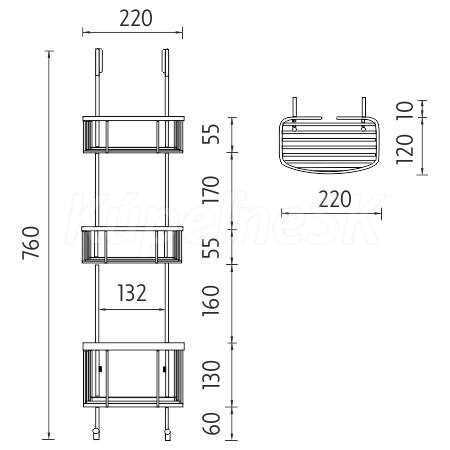 Nimco Drôtená polička závesná trojposchodová, povrchová úprava chróm, výška 76cm, TR 03-26