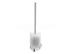 WC štětka s nádobkou z matného skla. Úchyt a rukojeť z mosazi, povrchová úprava chrom.