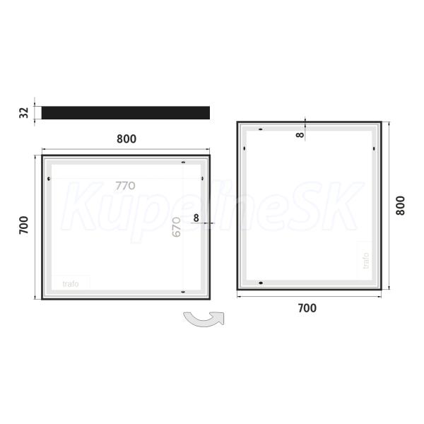 Zrcadlo do koupelny 80x70 s osvětlením a černým rámem je skvělým doplňkem do koupelny. Zrcadla do koupelny NIMCO vynikají kvalitním zpracováním a moderním designem. Osvětlení zajišťují výkonné LED diody po celém obvodu zrcadla zakryté 8 mm rámečkem. Konstrukce je z hliníkového rámu 32x19 mm, sklo zrcadla o tloušťce 5 mm. Zrcadlo lze uchytit horizontálně a vertikálně. Připojení 220-240 V. Ochrana IP 44. Bez vypínače. Zapojení do el. rozvodu a zapínání přes vypínač světel v místnosti. Barevná teplota denní bílá. Životnost LED diod je až 50 000 hodin. Součástí zrcadla je kabelová spojka, IP 44.