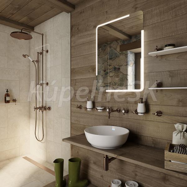 Zrcadlo do koupelny 60x80 s osvětlením v rozích je skvělým doplňkem do koupelny. Zrcadla do koupelny NIMCO vynikají kvalitním zpracováním a moderním designem. Svícení za použití akrylátového skla plexiglass. Konstrukce je z hliníkového rámu 32x19 mm, sklo zrcadla o tloušťce 5 mm. Zrcadlo lze uchytit horizontálně a vertikálně. Připojení 220-240 V. Ochrana IP 44. Bez vypínače. Zapojení do el. rozvodu a zapínání přes vypínač světel v místnosti. LED čipy s vysokým výkonem. Barevná Teplota denní bílá – jasné polední světlo. Životnost LED diod je až 50 000 hodin.