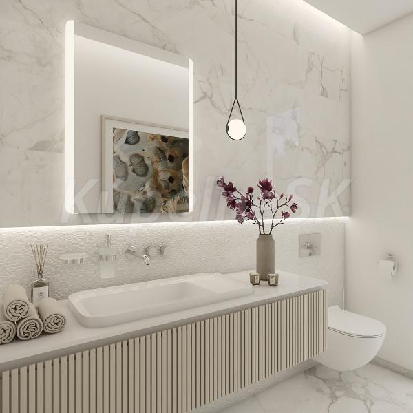 Koupelnové podsvícené LED zrcadlo. Příkon 21 W, barevná teplota 6500 K. 1512 Lumen.