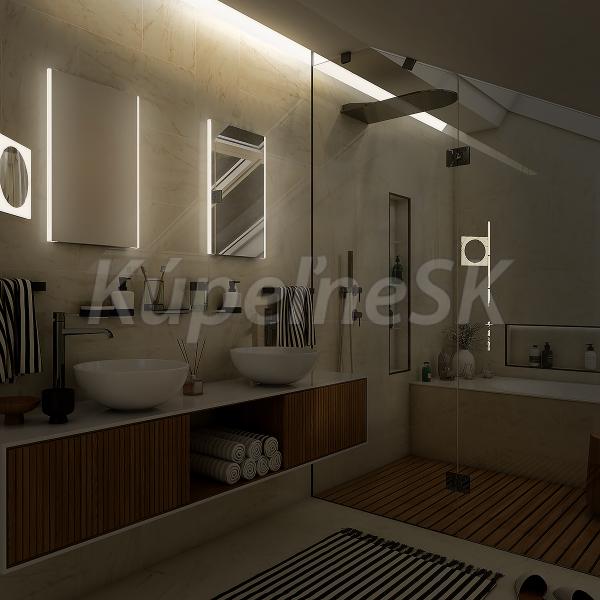 Koupelnové podsvícené LED zrcadlo. Příkon 21 W, barevná teplota 6500 K. 1512 Lumen.