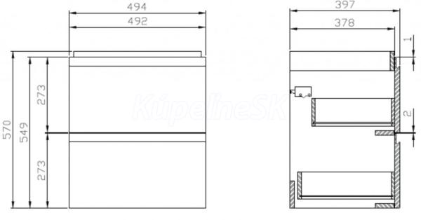 Cersanit MODUO 50 Skrinka umývadlová závesná, 49,4x39,7x57 cm Šedá lesk S929-011