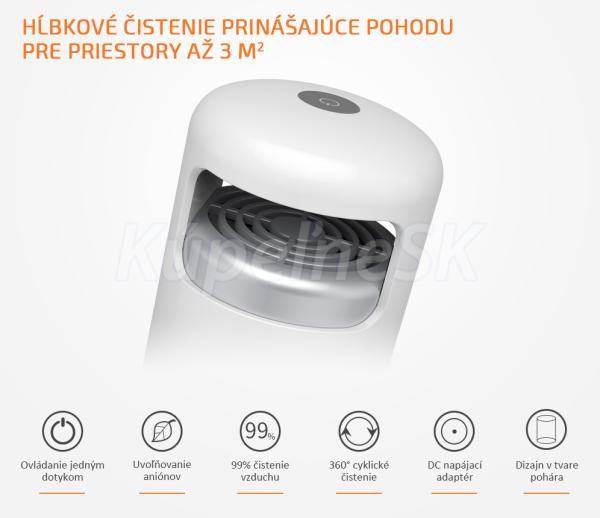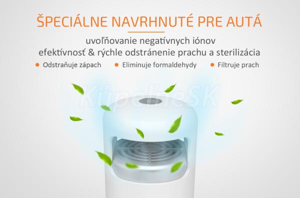 Čistička vzduchu do auta je vybavená tiež ionizátorom, ktorý do vzduchu uvoľnuje záporné ióny - anióny a vďaka tomu vytvorí vynikajúci čistiaci účinok, osvieži vašu myseľ a posilní imunitu. Prítomnosť záporných iónov vo vzduchu zvyšuje prívod kyslíka do mozgu, znižuje krvný tlak, podporuje krvný obeh a metabolizmus a posilňuje imunitu ľudí.
