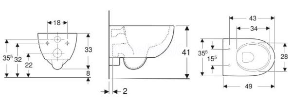 Geberit Selnova Compact krátky 49cm Závesné WC Rimfree Uzavretý Tvar 490x355mm, Biele oblé