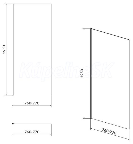Cersanit MODUO Bočná stena 80x195cm, Chróm, Číre sklo S162-007