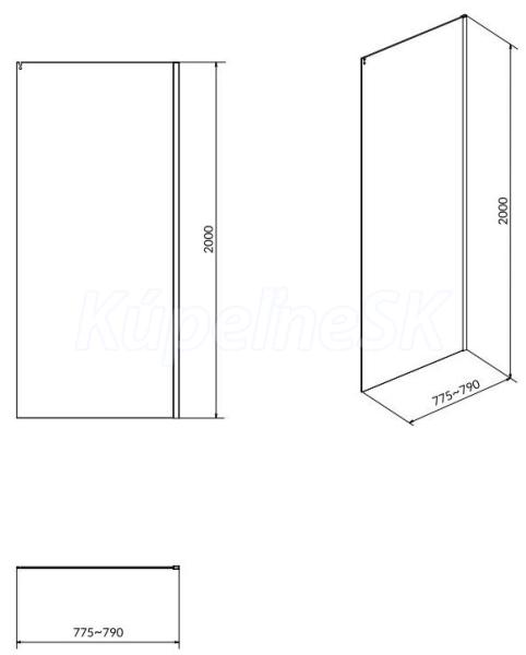 Cersanit CREA Bočná stena k posuvným dverám 80x200cm, Chróm, Číre sklo S900-2613