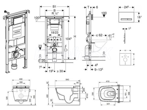 - predstenový inštalačný prvok Geberit Duofix (111.355.00.5), so splachovacou nádržkou pod omietku Sigma 12 cm, k inštalácii medzi bočné steny