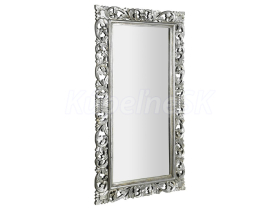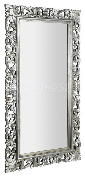 Zrkadlo v ,ručne vyrezávanom drevenom ráme Celkový rozmer: 80x150 cm (šírka rámu 14 cm) Farebné prevedenie rámu: strieborná