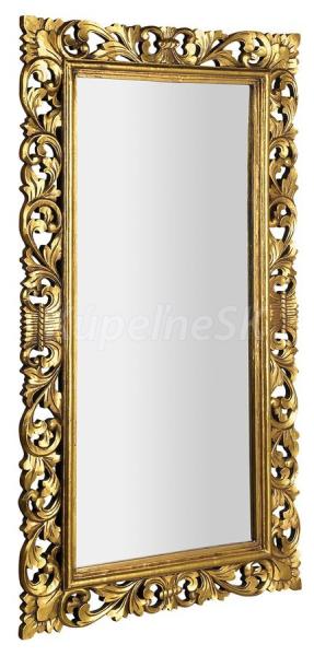 Zrkadlo v ,ručne vyrezávanom drevenom ráme Celkový rozmer: 80x150 cm (šírka rámu 14 cm) Farebné prevedenie rámu: zlatá