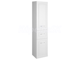Závesná vysoká skrinka, so zásuvkou a košom na bielizeň 1x dvierka v ,hornej časti Vnútri 2 výškovo nastaviteľné police 1 zásuvka V dolnej časti výklopný kôš na bielizeň Skrinka je dodávaná s ,elegantnými úchytkami v ,bielo-chrómovom prevedení Skrinka je dodávaná so spomaľujúcou pánty Dvierka sa môžu inštalovať s ,otváraním na pravú či ľavú stranu Možné inštalovať s ,nožičkami, ktoré je nutné objednať samostatne Nábytok je dodávaný v ,zmontovanom stave, pripravený na okamžitú inštaláciu. Favole je klasická séria kúpeľňového nábytku s ,decentne frézovaným dekorom na čelách zásuviek a dvierkach v ,bielom matnom prevedení. Umývadlové skrinky je možné kombinovať so zrkadlami a doplnkovými skrinkami v ,rovnakom štýle a odtieni. Elegantný umývadlá podčiarkujú vzhľad celej série, ktorá sa hodí nielen na chalupu alebo do činžiaku zo začiatku 20. storočia.