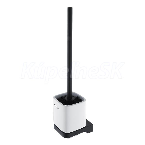 WC štětka s držákem na zeď, nízká hranatá keramická nádoba, rukojeť černý mat.