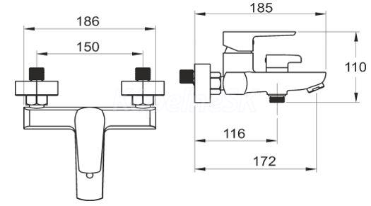 Novaservis Metalia 58 vaňová nástenná batéria bez príslušenstva Chróm 58020/1,0