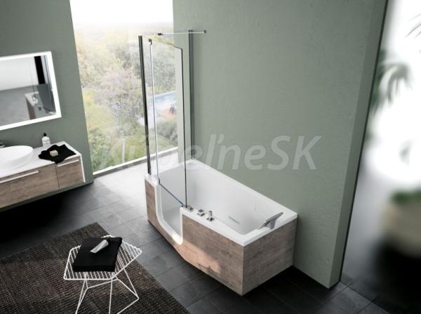 Vaňová zástena sa skladá z troch dielov. Bočná pevná stena (70/75 x 150 cm) a predné zástena (84 x 150 cm), kedy segment pri stene je pevný a otvárateľnosť druhého segmentu je + - 90 stupňov zo základnej polohy na vani. Otočný diel sa dá sklopiť do vane. Spodná hrana je opatrená tesniacou lištou zo silikónovej gumy.