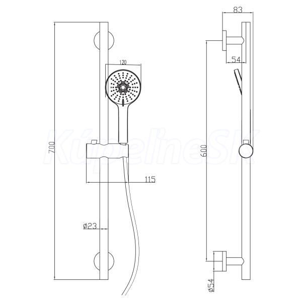 Set obsahuje: ručnú sprchu, 2 funkcie, materiál: ABS sprchovú plastovú hadicu 150 cm sprchovú kovovú tyč s posuvným držiakom sprchy - dĺžka 700 mm Doporučená údržba batérií, sprchových stĺpov a ďalšieho príslušenstva v čiernej alebo bielej variante: Pre zachovanie estetickej kvality výrobku odporúčame čistiť povrch výrobkov (vodovodných batérií, sprchových stĺpov, ručných a hlavových spŕch, hadíc, sifónov, výpustí a ďalšieho príslušenstva) iba mäkkou handričkou a vodou. Zároveň odporúčame vždy po použití utrieť do sucha, aby na povrchu nezostávali kvapky vody a nemohol sa tak začať usadzovať vodný kameň. Na čistenie sa nesmie používať abrazívne čistiace pomôcky ani agresívne čistiace prostriedky.