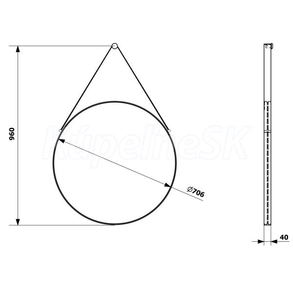 >> Kúpeľňový nábytok >> Zrkadlá a Zrkadlové skrinky >> Zrkadlá bezrámové a rámové >> Sapho ORBITER zrkadlo guľaté s koženým popruhom, o 70cm, čierna mat