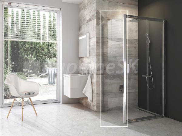 Jednodielna pevná stena Blix vo vyhotovení lesklý chróm a s výplňou z číreho skla s ochrannou vrstvou Ravak AntiCalc. Otočiteľný výrobok pre ľavý aj pravý variant.