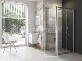 Jednodielna pevná stena Blix vo vyhotovení matný chróm a s výplňou z číreho skla s ochrannou vrstvou Ravak AntiCalc. Otočiteľný výrobok pre ľavý aj pravý variant.