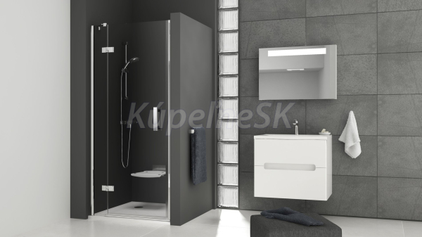 Dvojdielne sprchové dvere SmartLine vo vyhotovení lesklý chróm a s výplňou z číreho skla s ochrannou vrstvou Ravak AntiCalc®. Pántový systém otvárania. Ľavý variant.