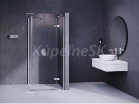 Pevná stena SmartLine vo vyhotovení lesklý chróm a s výplňou z číreho skla s ochrannou vrstvou Ravak AntiCalc. Pravý variant.