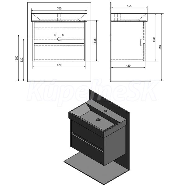 ZnačkaSAPHO SériaNIRONA 3D modelÁNO Rozmer67x51,5x43 cm Šírka670. mm Výška515. mm Hĺbka43