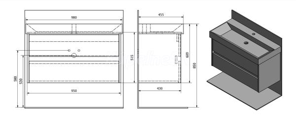 ZnačkaSAPHO SériaNIRONA 3D modelÁNO Rozmer95x51,5x43 cm Šírka950. mm Výška515. mm Hĺbka43