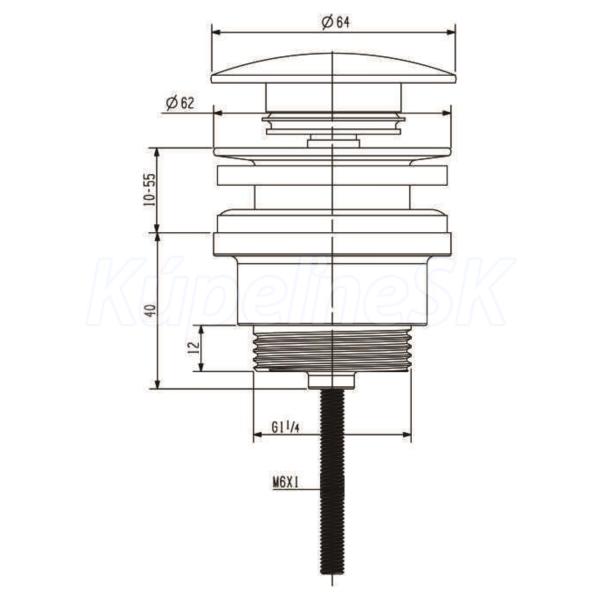 Sapho Umývadlová výpust 5/4 ", click-clack, veľká zátka, tl.10-55mm, chróm CV1002