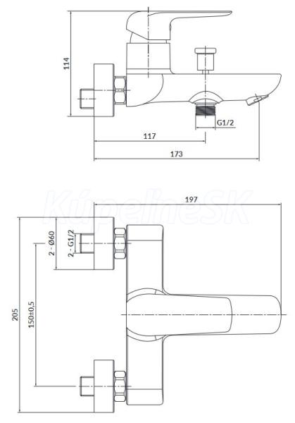 Cersanit CITY batéria vaňovo-sprchová nástenná 150mm, Chróm S951-344