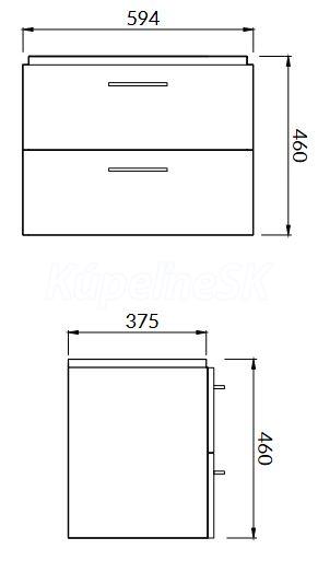 Závesná skrinka v lesklom prevedení s dvoma zásuvnakmi so systémom mäkkého zatvárania, je doplnená chrómovými madlami, dodávaná vrátane keramického umývadla.