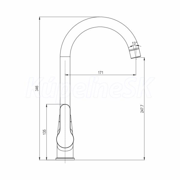 >>  Batérie vodovodné  >>  MEREO  >>  Mereo Drezová stojanková batéria, Zuna, s ramienkom nad pákou, výška 346 mm, chróm CB20104