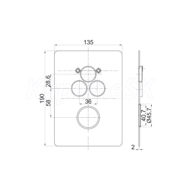 Termostatická podomietková tlačidlová batéria - 3-cestná - hranatý kryt