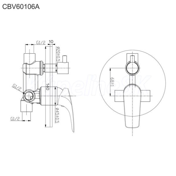 >>  Batérie vodovodné  >>  MEREO  >>  Mereo Sprchová podomietková batéria s prepínačom, Eve, Mbox, kruhový kryt, chróm CBV60106A