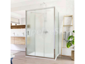 Hliníkové profily vo farbe chróm, trojdielné zasúvacie dvere a dva pevné diely, sklo Point, sila skla 6 mm, obdĺžnik, rozmer 1200x800x1200 mm, výška 1900 mm.