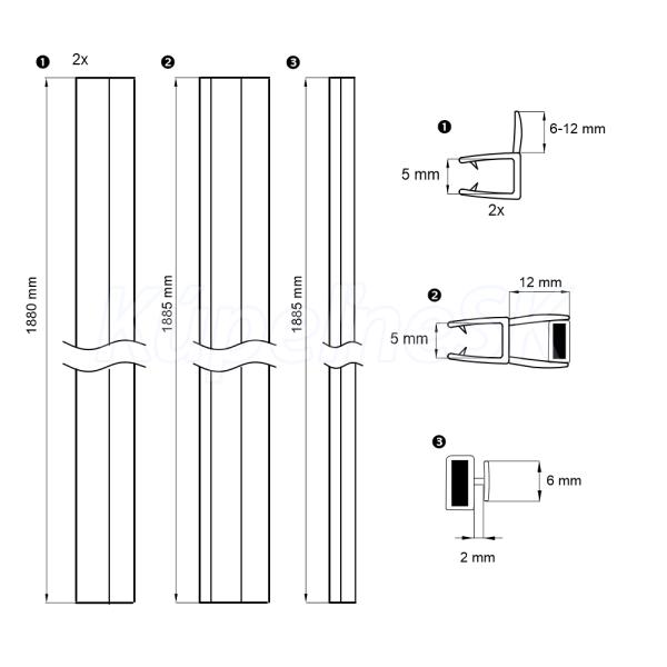 Súprava tesnení pre zasun. dvere dvojdielne CK804xxH (posuvné dvere 1 ks, fixné sklo1 ks, mag. lišty 2 ks)