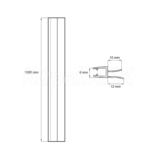 Stieracia lišta silikónová spodná pre bezrámové sprch. kúty a dvere 6 mm, 1 m, 1 ks, stierci lamela široká 10mm