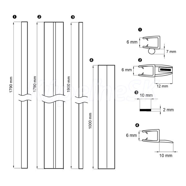 Sada tesnení pre pivotové sprchové kúty CK809..K, (bublinka 1ks, mag. lišty 2 ks, stieracia lišta 1ks)