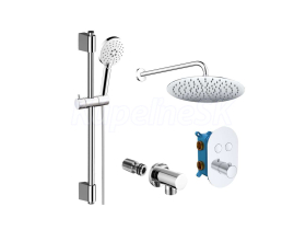 Špeciálne navrhnutá kolekcia termostatických batérií. Ich unikátnosť spočíva predovšetkým v možnosti nastavenia si presnej teploty výstupnej vody, ktorá sa nemení ani pri prerušení sprchovania. Tým šetrí nielen vodu, ale aj enegie a náklady na ohrev. Teplotu vody možno nastaviť bez akýchkoľvek prekážok až do 38 ° C. Pre nastavenie vyššej teploty je nutné stlačiť poistku, ktorá nedovolí deťom zvýšiť teplotu vody a chráni ich tak pred oparením. Výhodou je tiež nízka hlučnosť a kartuša s dlhou životnosťou. V batérii je nastavený maximálny prietok vody, bez možnosti ďalšej regulácie. Dvojcestná varianta (prepínanie dvoch polôh tlačidlom) je určená do sprchových kútov s ručnou a hlavovou sprchou alebo k vani s napúšťaním prepadom a možnosti sprchovania. - 5 rokov záruka na batériu - servis vodovodných batérií zaistený v rámci SR a ČR Súčasťou setu je posuvný držiak s trojpolohovou sprchou, plastovou šedostrieborná hadicou 150 cm, stenový vývod, guľaté rameno zo steny 330 mm, nerezová tanierová sprcha Slim o 200 mm.