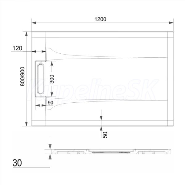 Obdĺžniková sprchová vanička s dlhou životnosťou, liaty mramor, vrátanie sifónu, bez nožičiek, gelcoat.