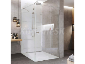 Hliníkové profily vo farbe chróm, sklo Číre, hrúbka skla 6/6 mm, obdĺžnik, 800 (dvere) x 1000 (pevný diel), výška 2000 mm.