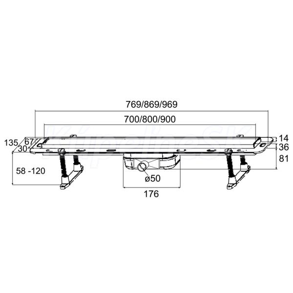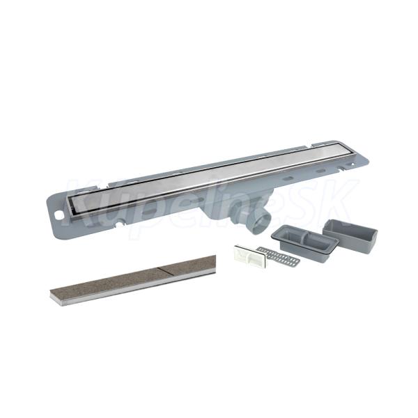 Odtokové žľaby predstavujú nové, moderné riešenie sprchových kútov a kúpeľní. V sprchových kútoch nahrádzajú vaničky a dotvárajú estetický ráz kúpeľne. Odtokový žľab je dodávaný vrátane roštu. Jeho dizajn je jednoduchý a esteticky príjemný. Kombinácia sifónu a suché uzávery zabraňuje prenikaniu zápachu. Možné otočenie a použitie pre vloženie dlažby. - rošt: nerezová oceľ (AISI 304) - telo: ABS plast - sifón: plast - prevádzková teplota max. 80°C - výškovo nastaviteľné nožičky - nerezový rámček - prietok 36 l/min - možnosť otočenia roštu a použitie na vloženie dlažby