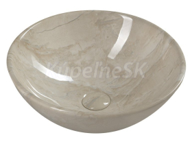Keramické umývadlo DALMA Materiál: keramika, dekor: béžový mramor Možnosti inštalácie: na dosku Odporúčame výpust so zátkou vo farbe umývadla, pozri Príslušenstvo Séria keramických umývadiel DALMA zaujme kamenným efektom. Umývadlá sú glazovaná s ,vypálenými obtlačky v ,dizajne kameňa, čím je zaručená stálosť a trvanlivosť dekoru. Vyberať môžete nielen z ,troch dekorov v ,odtieňoch mramoru, ale aj z ,piatich tvarov. Umývadlá sú určené na postavenie na dosku, ku všetkým možno dokúpiť uzatvárateľnú výpust vo farbe umývadla.