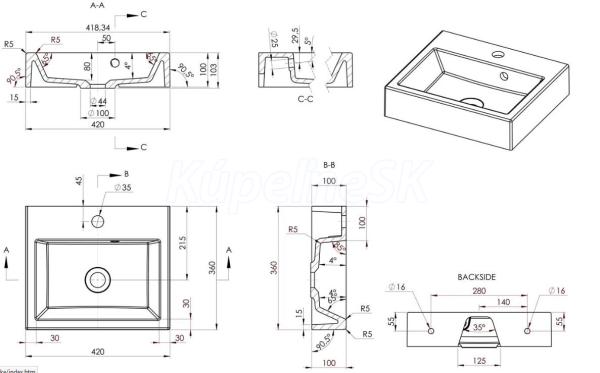 ZnačkaSAPHO SériaORINOKO 3D modelÁNO Rozmer42x10x36 cm Šírka420. mm Hĺbka360. mm FarbaBie
