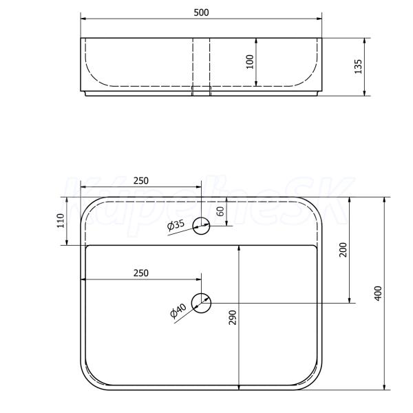 Sapho GARDA keramické umývadlo 50x13,5x40 cm, na dosku