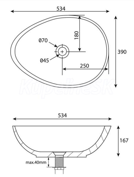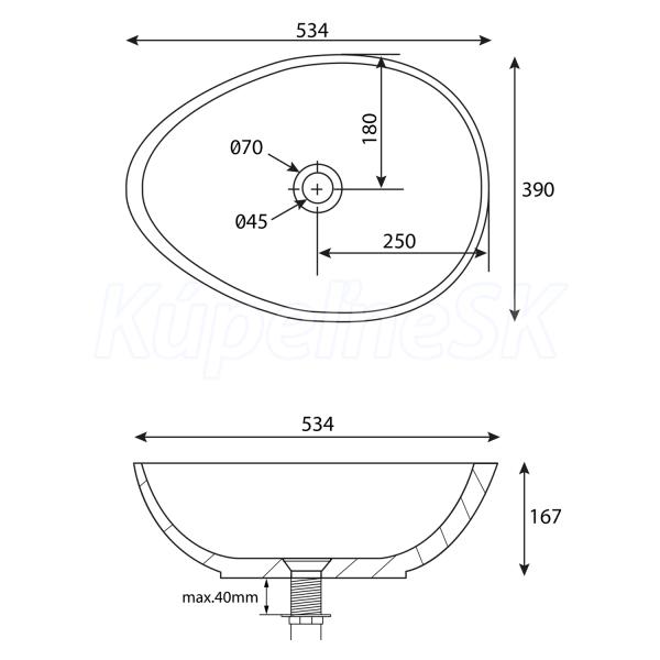 >> Umývadlá >> Umývadlá na dosku >> Sapho PUNC betónové umývadlo vrátane výpusti, 53x39 cm, biely pieskovec