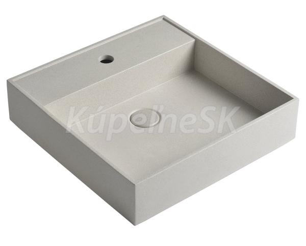 Sapho QUADRADO betónové umývadlo vrátane výpusti, 46x46 cm, biely pieskovec AR469